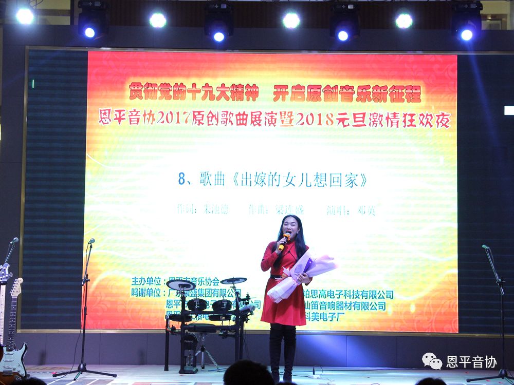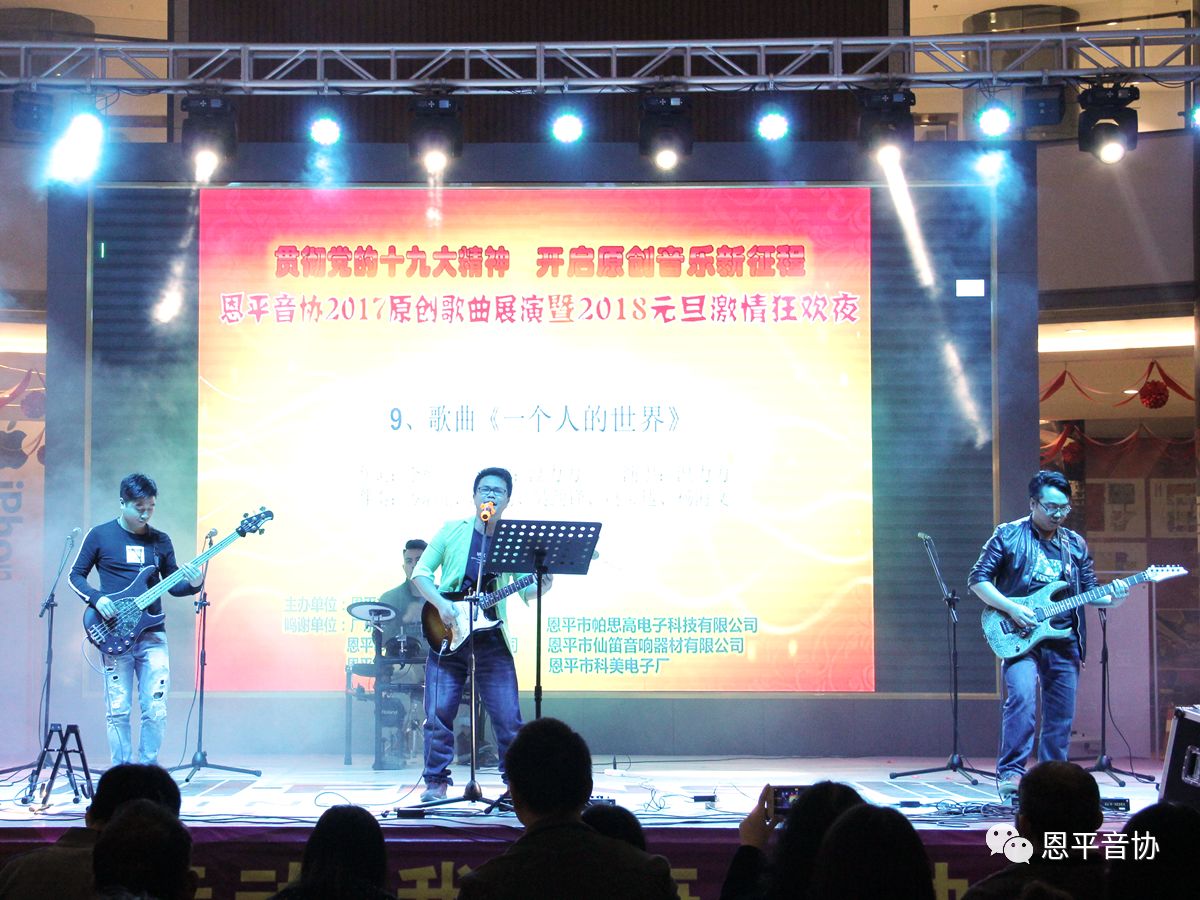 为推广宣传本土优秀原创音乐作品,提升本土音乐家和优秀文艺作品的影响力,促进我市文艺繁荣发展。12月30日晚,“贯彻党的十九大精神 开启原创音乐新征程 ”恩平音协2017原创歌曲展演暨2018元旦激情狂欢夜在锦江国际购物广场中庭舞台精彩上演。