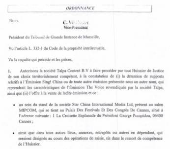 2016年1月,Talpa公司向香港国际仲裁中心申请临时禁止令,要求灿星停止制作新一季《中国好声音》;,。