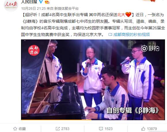 这首成都学子的原创音乐还登上了微博热搜,