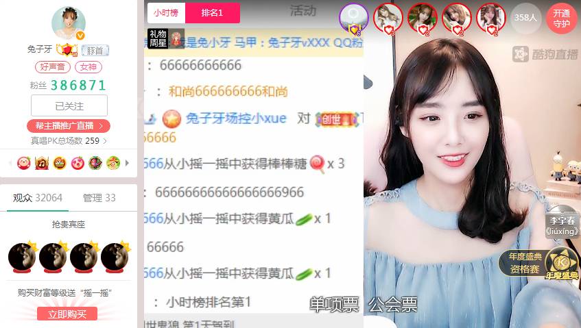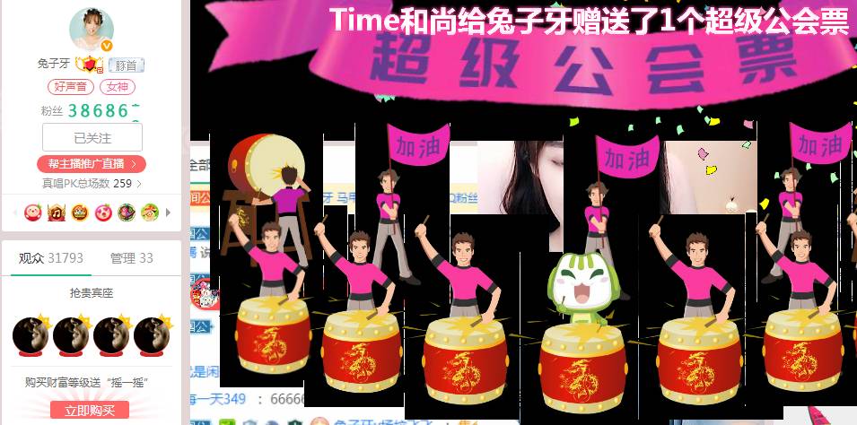今天兔子牙刚刚开播本以为今天不会上头条,也不会上小时榜!万万没想到,和尚哥来到直播间,二话不说豪刷10个超级公会票,直播间666刷不停,锣鼓喧天,鞭炮齐鸣,后续又继续连击公会票!这么突然,这是寓意何为呢?难道是换票?还是因为什么呢??有点丈二的和尚了!没谁了没谁了,而且助攻兔子牙暂夺小时榜一呢!和尚哥的公会不要票了吗?外出浪上一浪?大神的世界,凡人果然不懂,阿弥陀佛!