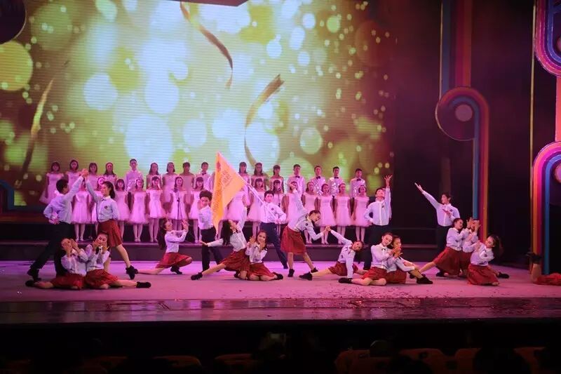 嘉祥锦江校区的同学们挥舞着校旗开场,气势磅礴的原创校园歌曲《嘉祥情》震撼全场