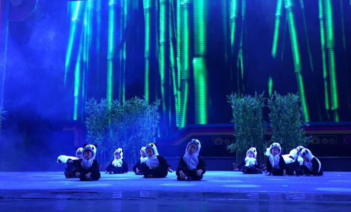 成都嘉祥外国语学校实验幼儿园带来开场歌舞表演《胖娃上成都》