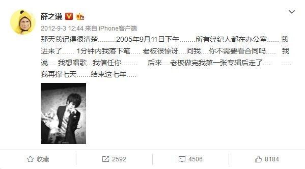 后来在合约快到期时,也发了条微博,称这七年都是撑过来的。