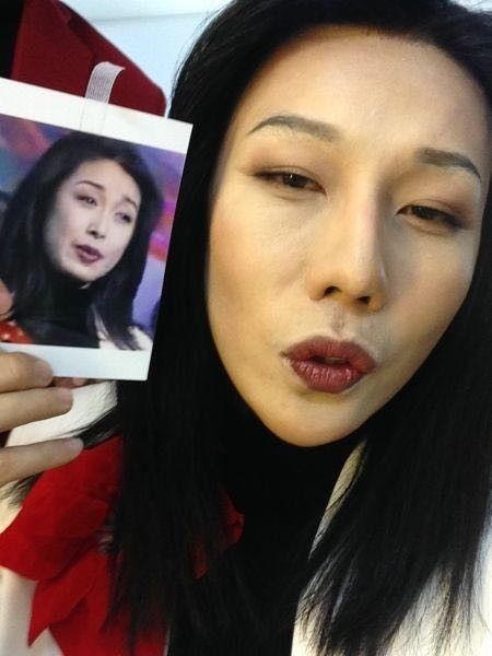 刘维为了模仿吴莫愁,自己网购买眼线笔和假发,在家练习画眼线(脑补这个场景),看这妖娆的妆容,和吴莫愁本人简直一毛一样。