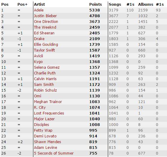 按照这种架势,专辑一出来,其他人都不用玩啦!无论是天王还是天后,都不想自己的专辑发售日与阿呆撞期……于是,“男版阿黛尔”骚姆(萨姆·史密斯)将专辑提前到11月初发行,而贾斯汀•比伯、单向乐队也选择比阿黛尔提前一周发行新专辑。