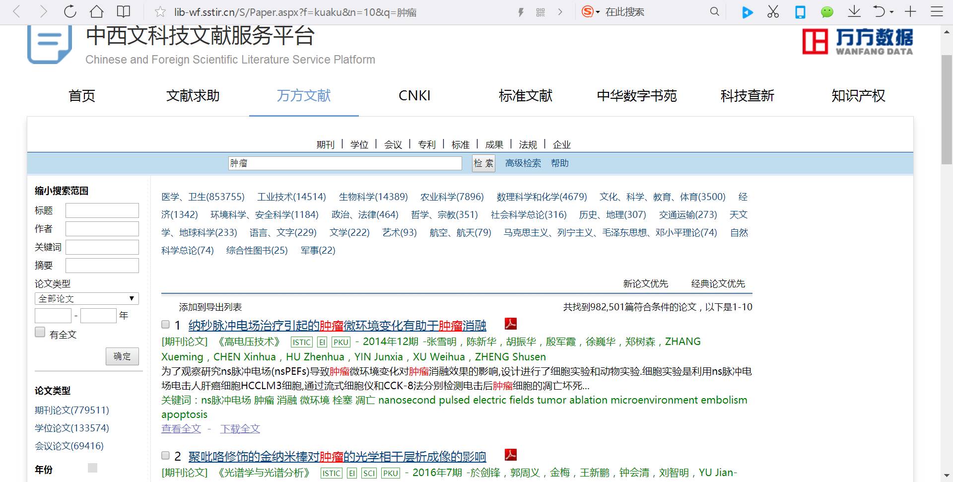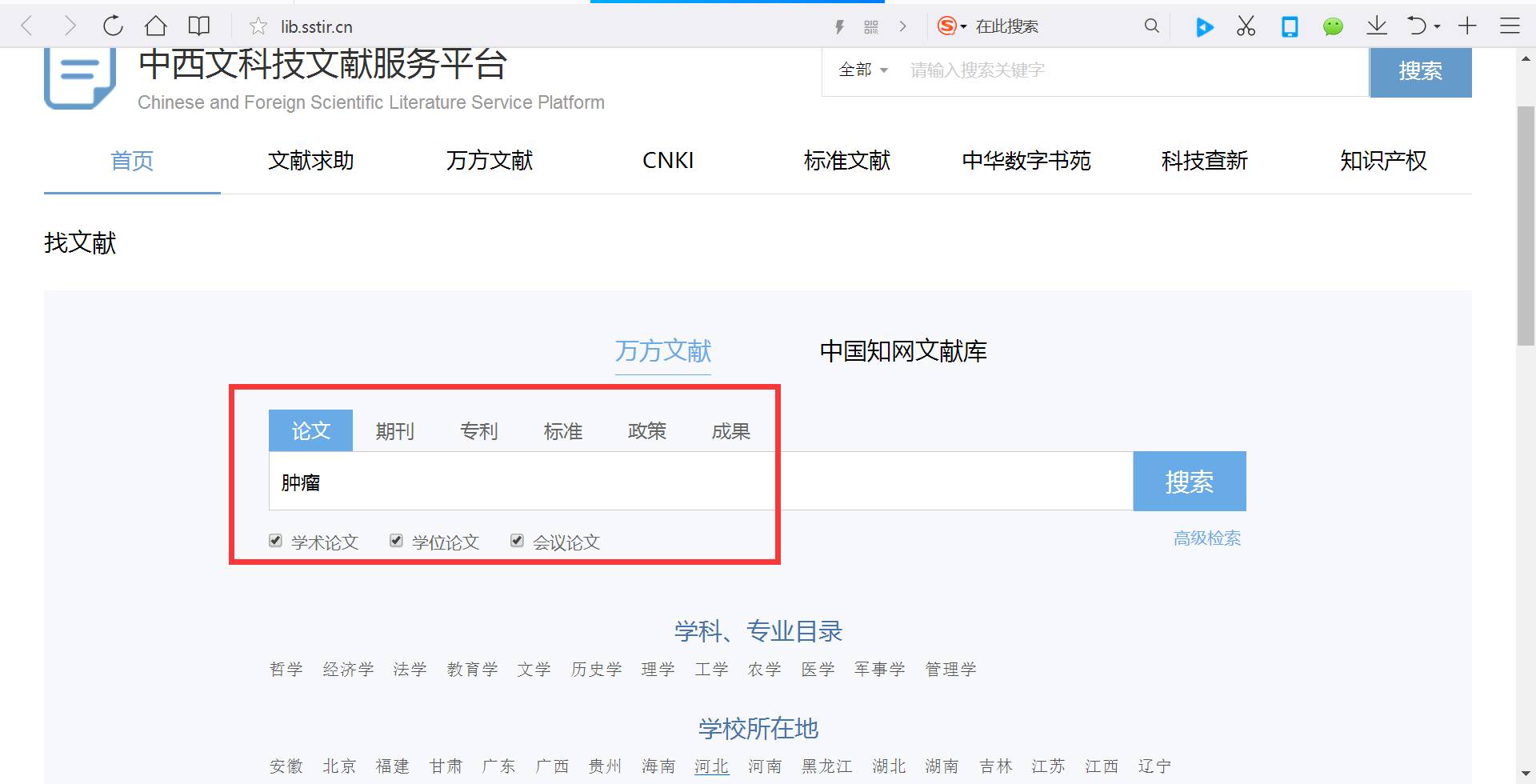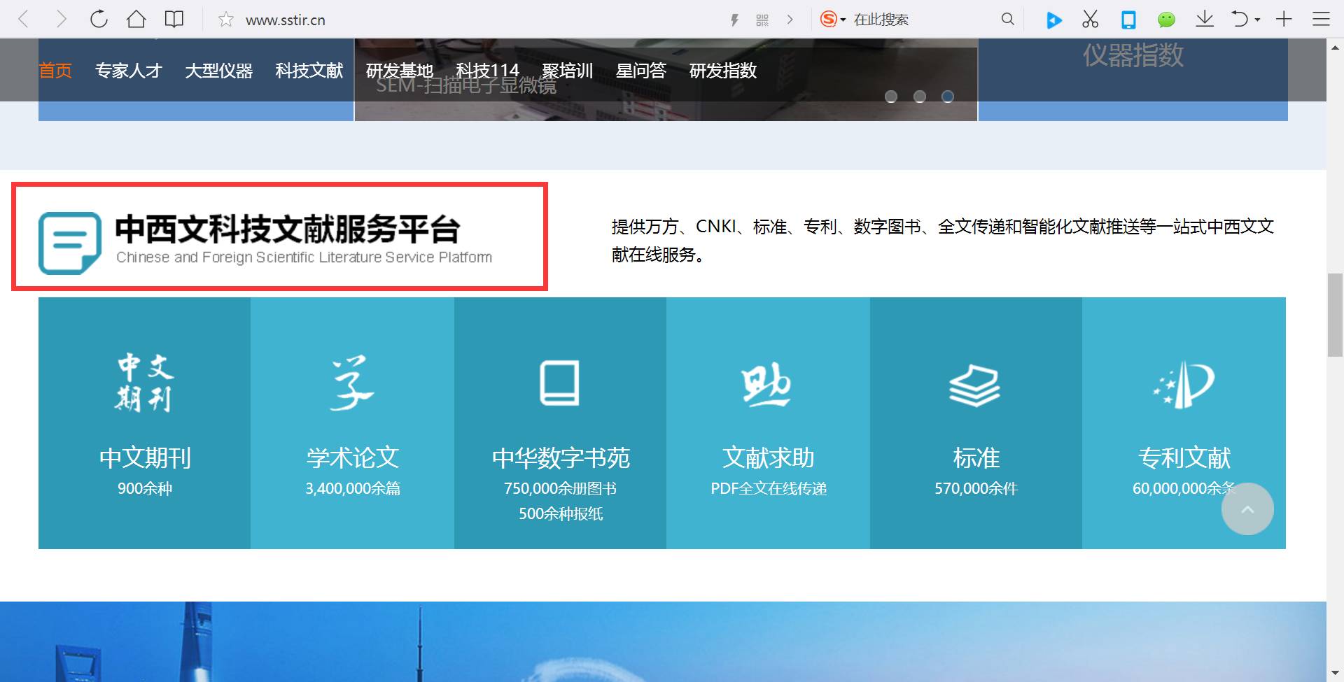 进入“首页”,向下翻找,找到并点击“中西文科技文献服务平台”(如图)。即可进入万方文献和中国知网文献库的搜索引擎首页。在搜索框输入关键字就可以啦!