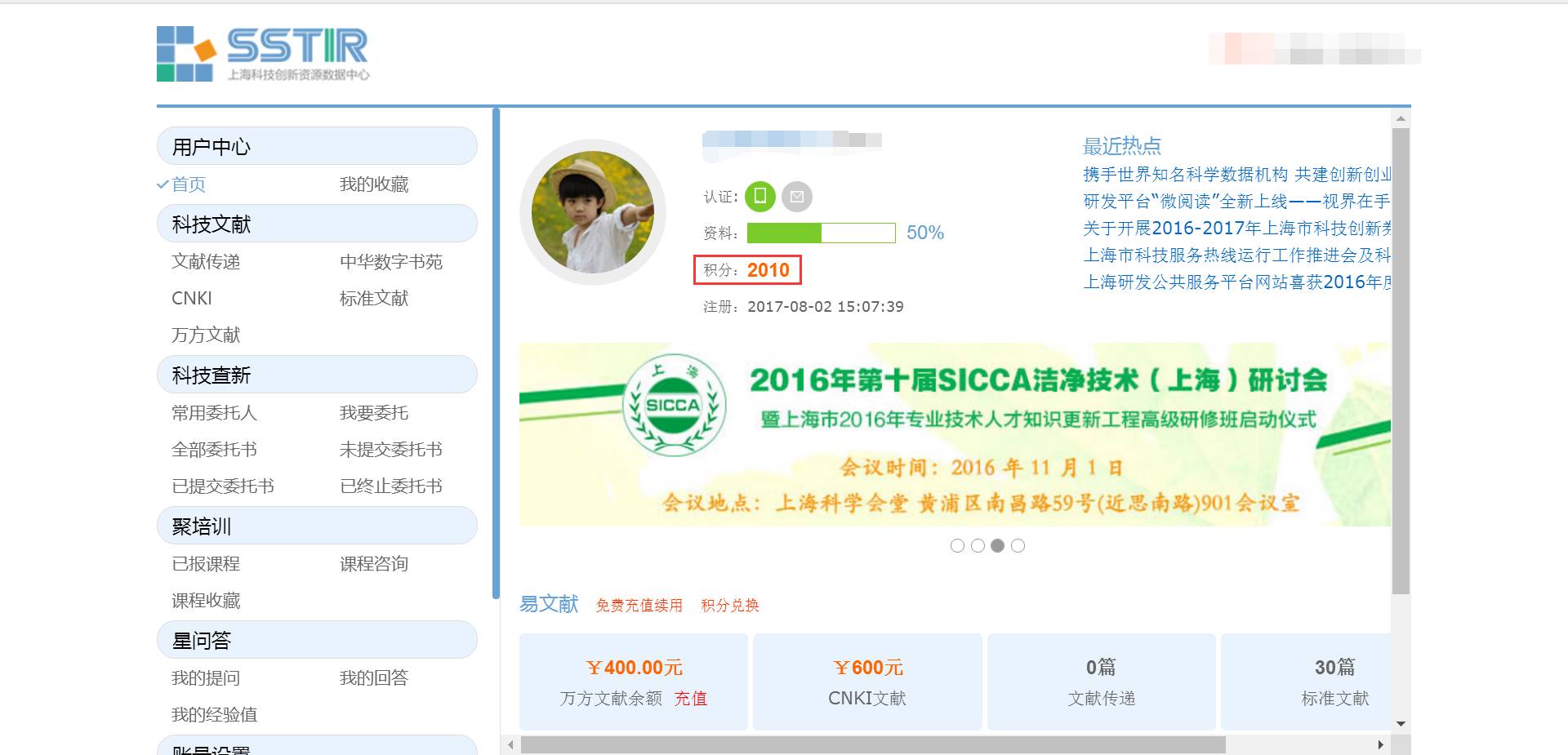 登陆之后点击右上角的账号,即可进入自己的个人中心,从个人中心可看到自己的账号有2000的积分,这些积分可以下载资源。
