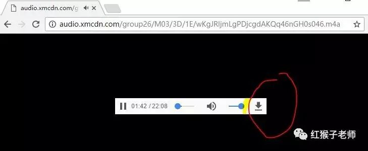 用浏览器打开音频文件地址,点击下载按钮,开始下载。