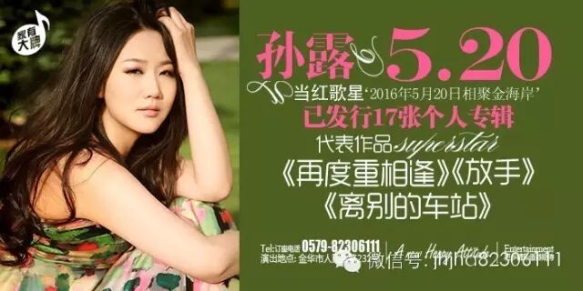 经典曲目回顾5月20日孙露与金华歌迷不见不散!我们在金海岸都市剧院等你!