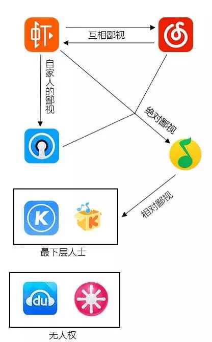 网上不是有一个音乐app鄙视链吗?是这样的: