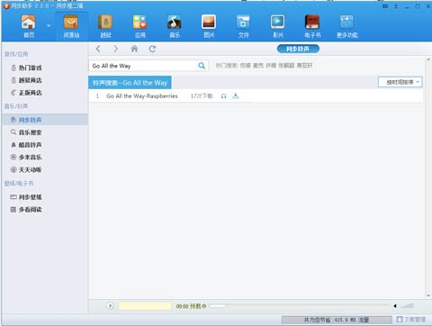 2、打开同步助手,将您的设备连接,切换到【资源站】界面下的同步铃声一栏。