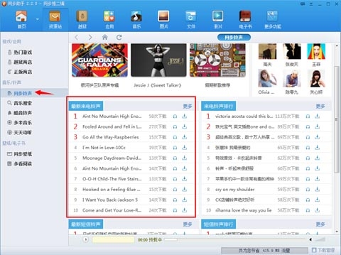 注:目前也可直接在同步铃声首页的“最新来电铃声”中选择下载。