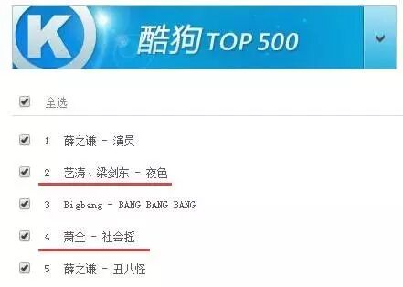 05年那年是神曲当道,在酷狗TOP500排行榜里,《夜色》、《社会摇》神曲雄居第二和第四,力压BIGBANG
