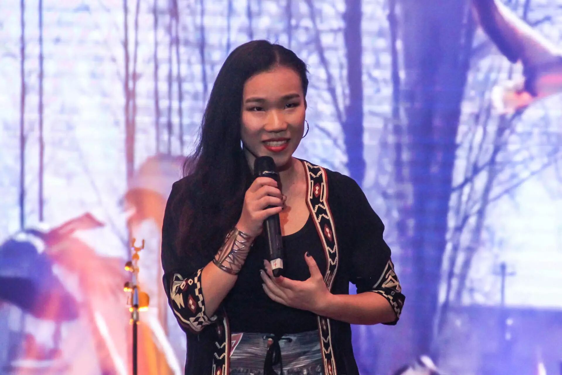 歌声委婉动听,饱含感情,时而高亢激昂,时而低沉婉转,诉说着心中的那份炙热而安静的情感。她的歌声就如同曲名一般宛如天籁,在场各位都静精聆听,沉醉于此。
