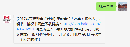 *备注:带“☑ ”的为必须提供的材料,其中选手报名表、参赛歌曲版权使用协议及参赛歌曲原创声明需选手本人或乐团负责人签名,文件可在江苏音乐台官方微信中发送关键词:“咪豆星球”下载。
