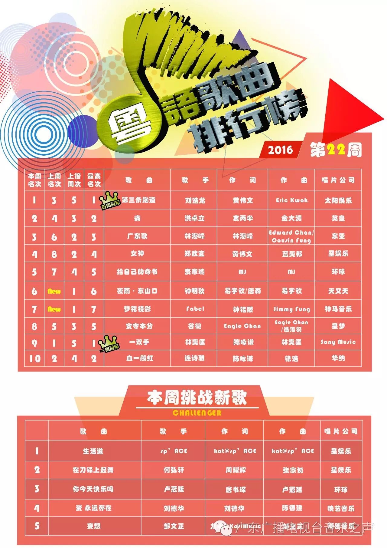 MusicFM993|粤语歌曲排行榜:2016年度第22周成绩