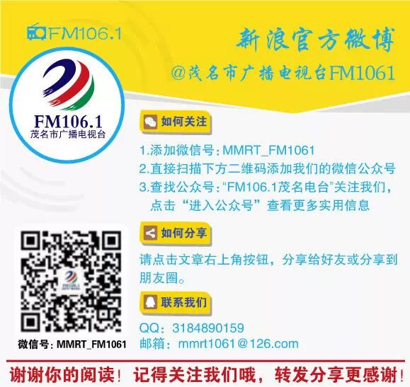 更多精彩内容敬请留意茂名市广播电视台旗下主流媒体FM106.1频率青青、志刚主持的《粤语歌曲排行榜》。播出时间:周一至周五下午17:00—17:30、周六下午17:00—18:00。