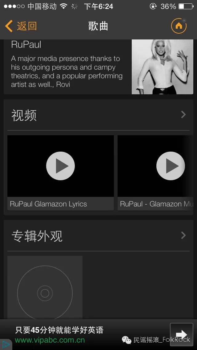 识别旋律后,页面出现歌曲识别“Glamazon”,歌曲名、音乐人简介。