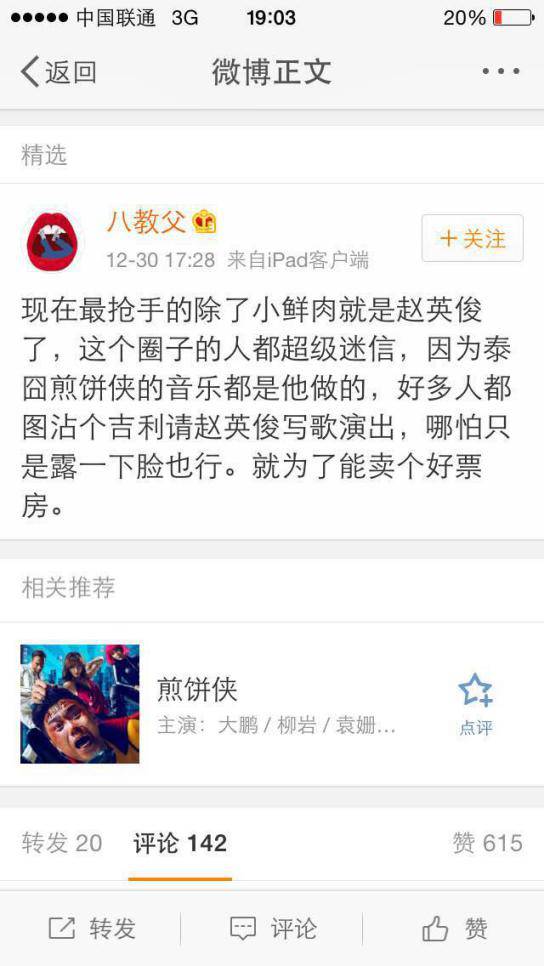 身负“第一电影主题歌唱作人”的称号,赵英俊也是一个大写的喜剧导演收割机,与徐峥、陈思诚、大鹏、叫兽易小星笑匠关系亲密。