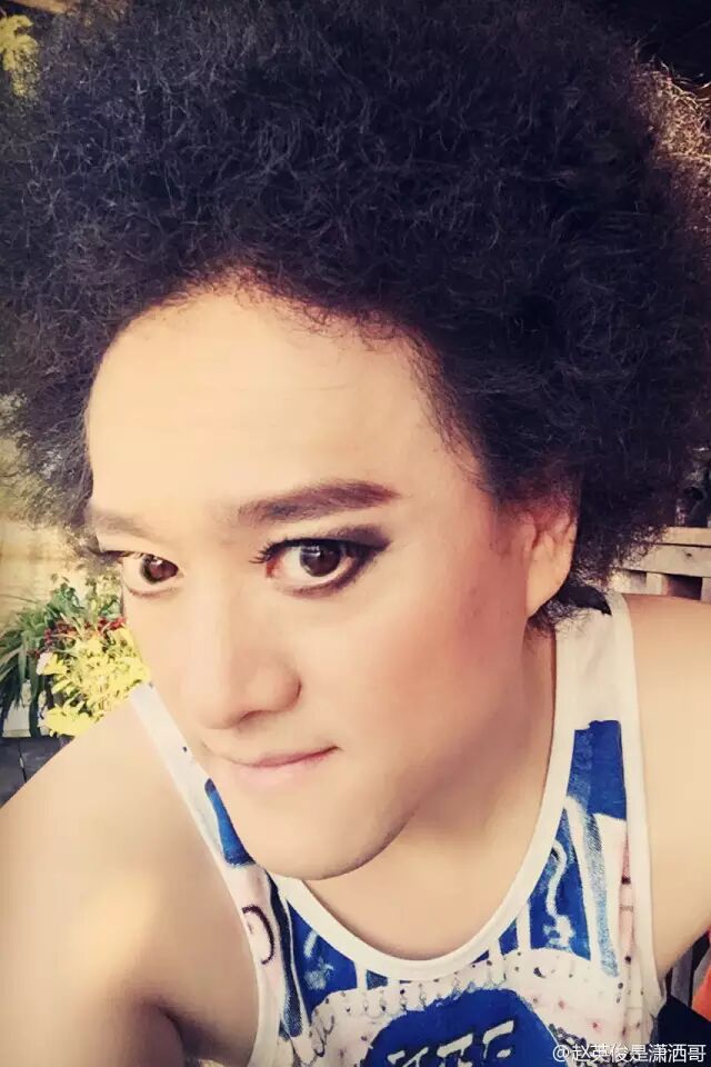 翻翻这哥们的微博,也是很有艺术氛围的,扮女装,还挺美: