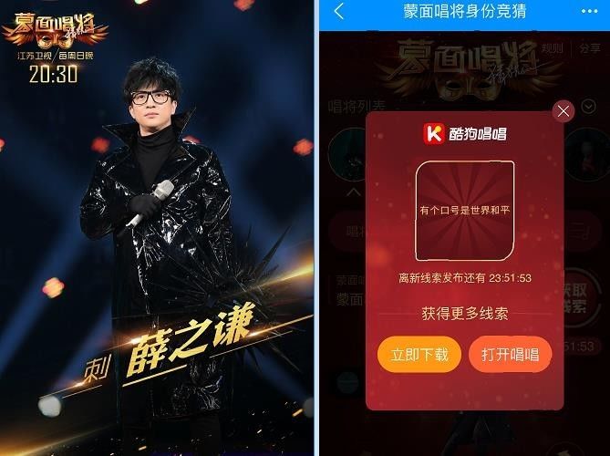 除了节目正版音频上线酷狗之外,酷狗平台独家蒙面竞猜活动也正火热进行中!及时关注酷狗音乐和酷狗唱唱给出的独家身份线索,参与竞猜活动,即有机会赢取iPhone X、酷狗智能音响等各种大礼!100%中奖哦!