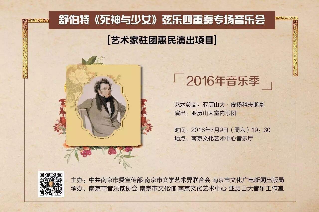 2016年乐团在中共南京市委宣传部的指导帮助下成立“南京亚历山大音乐工作室”,致力于创作、改编和演出一批经典室内乐作品,举办惠民演出季,并启动“驻团艺术家惠民演出”项目,让观众通过室内乐这种最容易接受和听懂的音乐形式,提高对古典音乐的鉴赏能力。