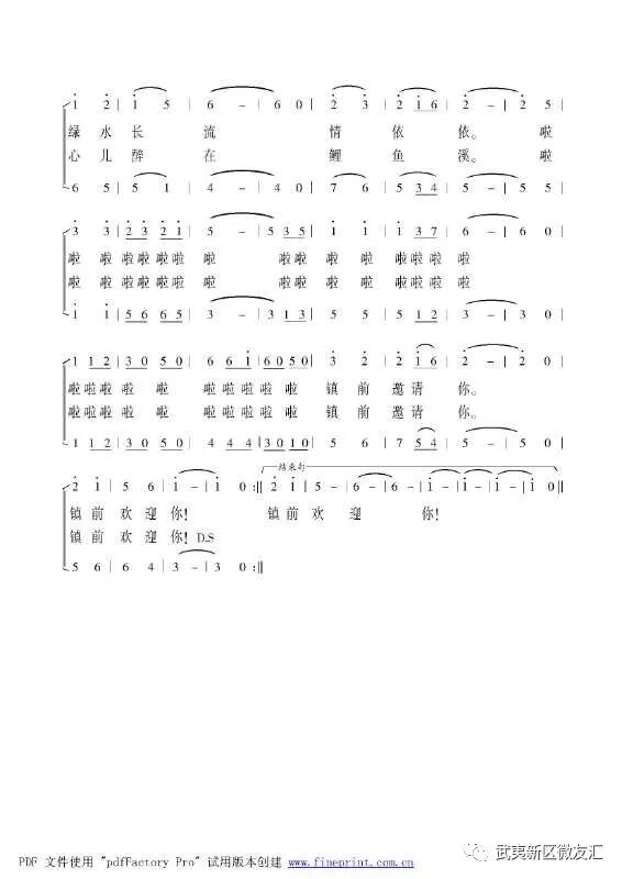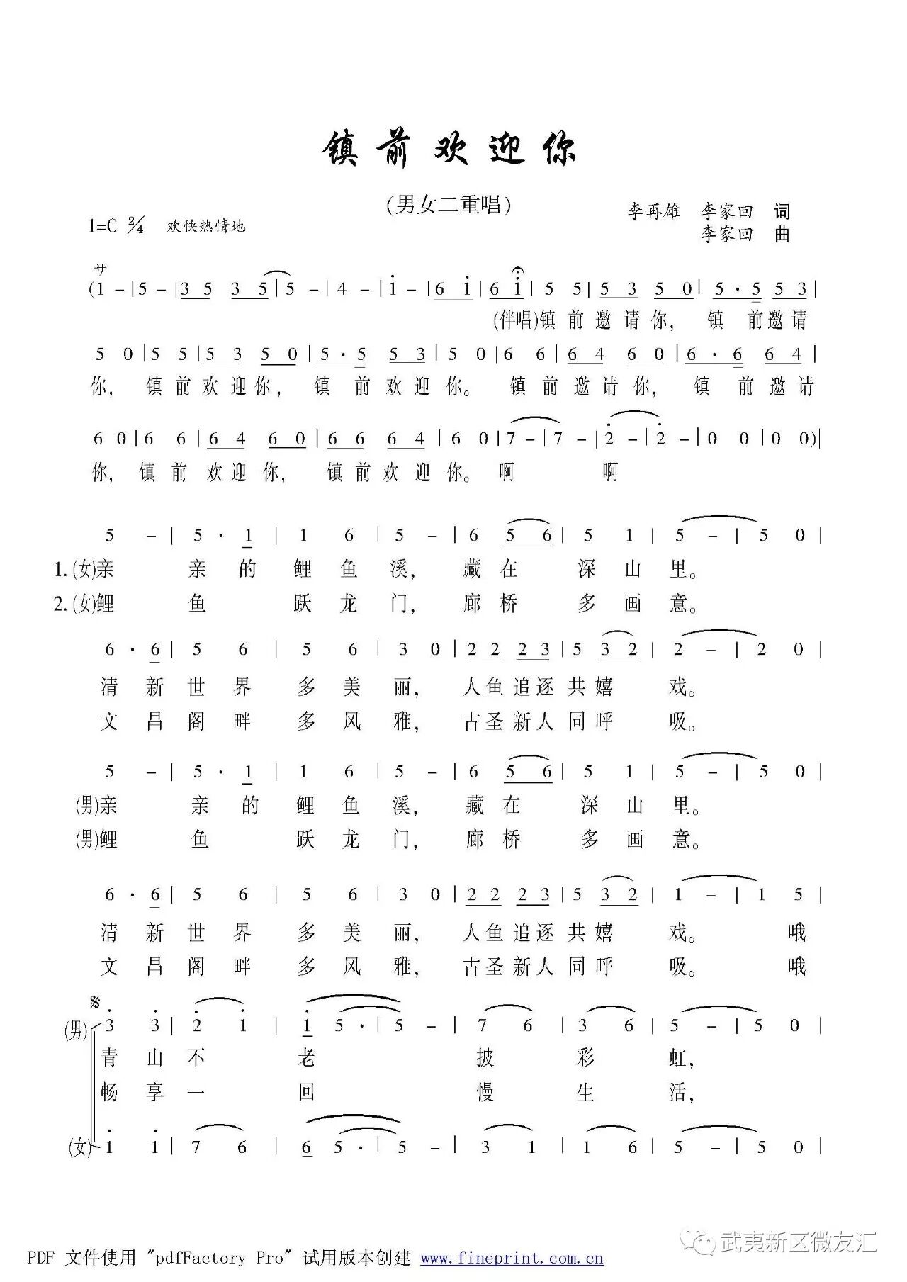 一个天高,云淡,风轻的日子,清新的空气中透着欢乐。蓝天白云下,美丽的鲤鱼溪畔,山民们以独特的方式,迎接着四方宾朋的到来!听,少女们阵阵天籁般清澈的歌声在蓝天白云间飘荡、回响。有击鼓声,欢呼声,还有山民们的扁担、刀鞘、木盆的敲打声。和的节奏拍,乡亲们用普通话与方言交替的方式,一遍遍热情地唱着:镇前欢迎你,镇前邀请你……构成了一曲山村的交响。在热闹的气氛中,引出了清新欢快男女声二重唱。这歌声,唱出了山里人的纯朴,唱出了山里人的热情好客,也唱出了他们的幸福和爽朗……