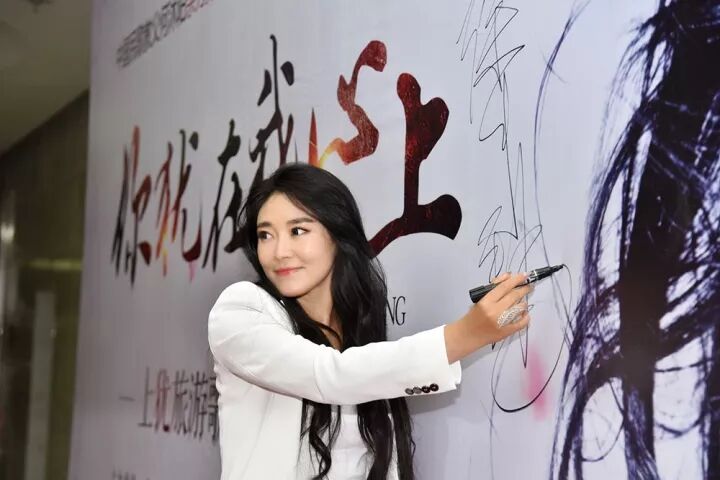 ▲徐千雅在大海报上签名