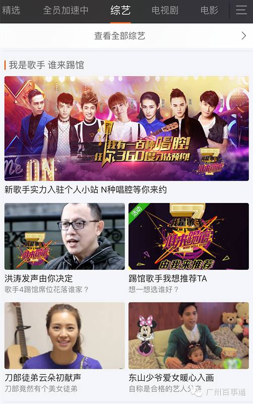 选择综艺栏目下拉找到《我是歌手 谁来踢馆》板块,进入专题页面