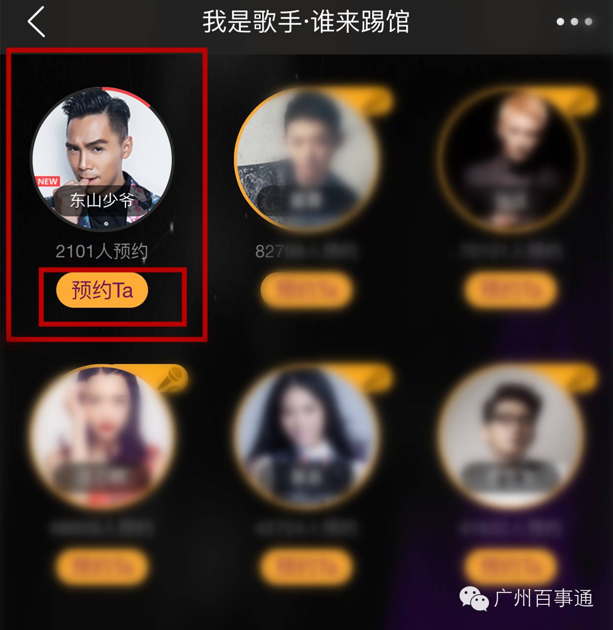 3.在我是歌手谁来踢馆 页面找到东山少爷,并单击预约。