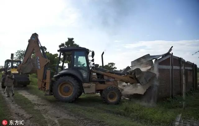 当地时间2016年9月19日,印度阿萨姆邦Bandardubi村,象夫指挥森林部门的大象拆毁房屋。为打击盗猎行为,印度下令拆毁卡齐兰加国家公园外围3个村庄的大约300栋房屋,驱逐住在犀牛庇护所附近的居民。强拆过程中,村民与警方发生冲突,致2人死亡,另有多人受伤。(来源:环球网)