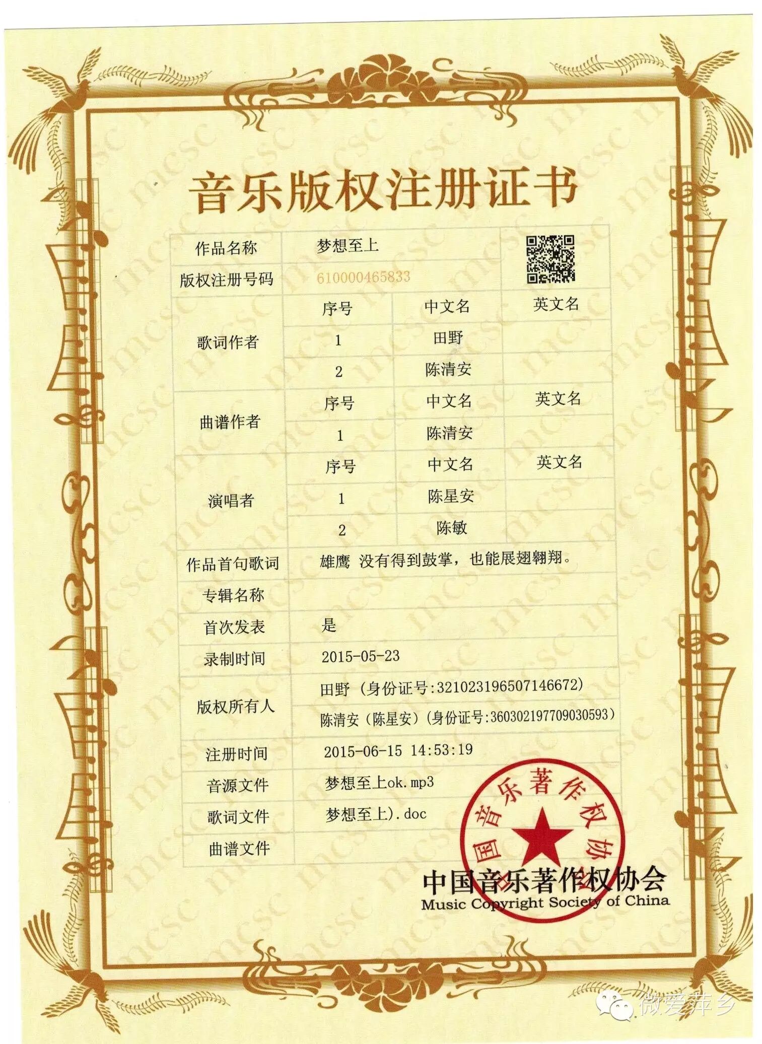 江西华夏通电子商务有限公司创作的歌曲《梦想至上》获音乐版权,或是萍乡首个拥有自主版权本地原创作品。