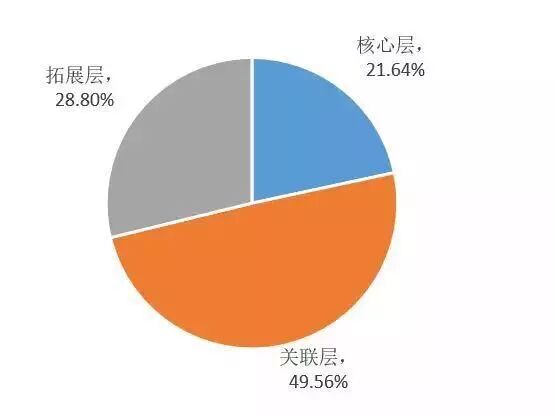 2016年,音乐产业核心层产值规模为703.98亿元,所占比重21.64%,同比有所下降,数据表明以音乐创意为主的核心层行业正处于新旧动能转换的关键节点,传统实体音像业进一步下滑,数字音乐产业因人口红利逐步消退、用户增量变缓而逐步进入存量用户的深耕时代;但音乐现场演出的崛起、数字音乐付费用户的快速增长以及商业模式的创新,都将推动核心层产业进入快速增长的轨道。