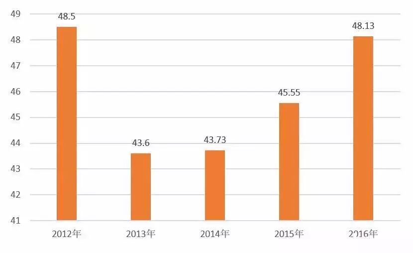 △图1-6 2014—2016年音乐教育培训产业产值对比(单位:亿元)