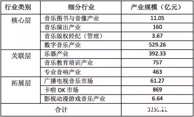 △表1-1 中国音乐产业细分行业的市场规模估算
