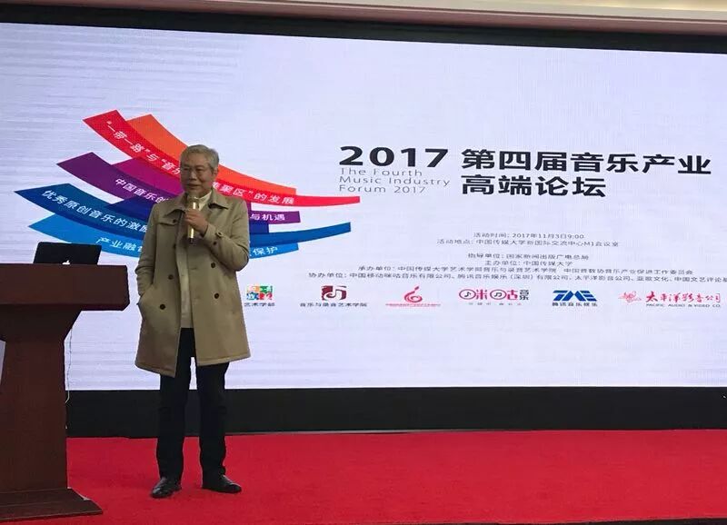 2017年11月3日,,由中国传媒大学主办,中国传媒大学艺术学部音乐与录音艺术学院、中国音像与数字出版协会音乐产业促进工作委员会(简称:音促会)联合承办,中国移动咪咕音乐有限公司、腾讯音乐娱乐(深圳)有限公司、太平洋影音公司、亚歌文化、中国文艺评论基地联合协办的“2017第四届音乐产业高端论坛”在中国传媒大学国际交流中心举行。