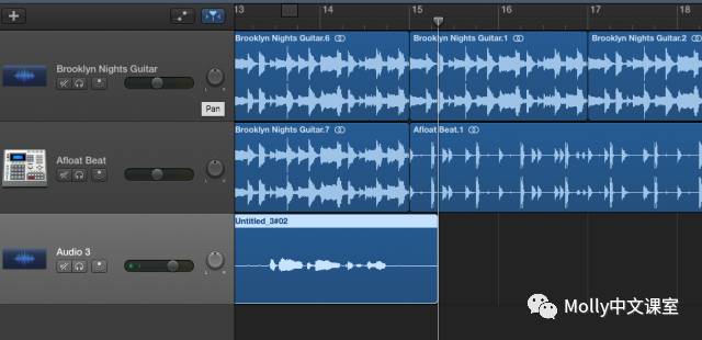 (1)你会看到黄色的时间轴,黄色的部分代表这一段会反复循环,因为我们之后要录不同的句子,所以可以点击黄色部分取消循环。