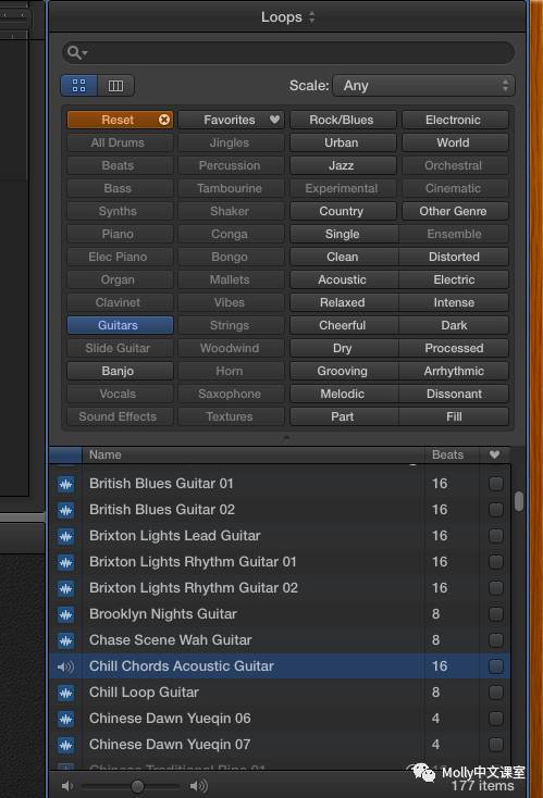 我通常会用两种乐器,一个是guitar (吉他), 另一个就是drum beat(鼓点)。吉他的音乐提供旋律,鼓点增强节奏,会使音乐更加有节奏感。