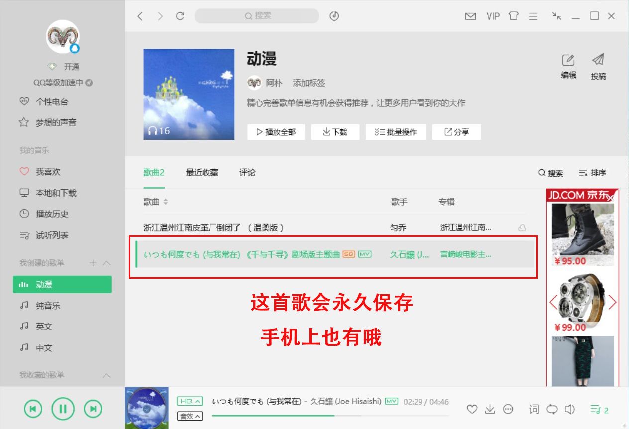 PC端QQ音乐免费永久听有版权或付费的歌曲方法!