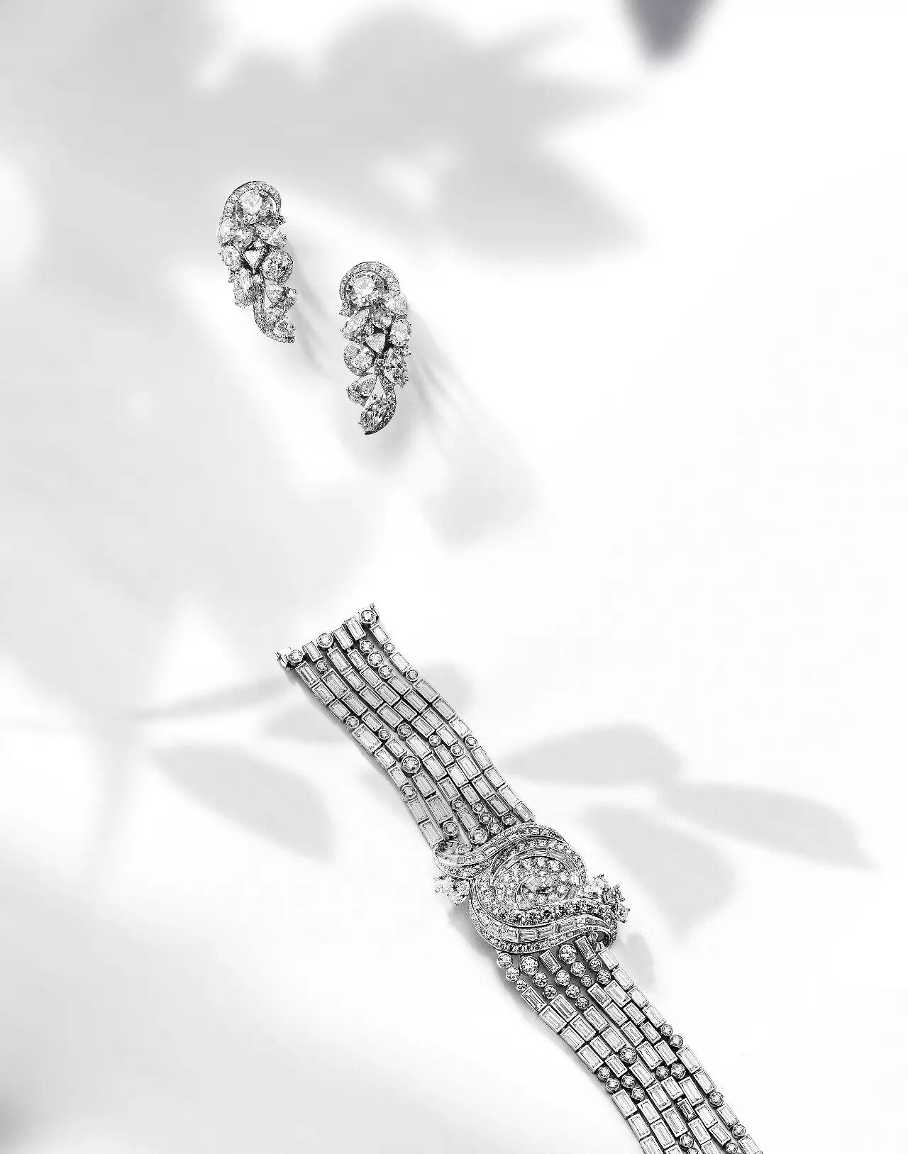 高级珠宝系列铂金镶嵌混合型切割钻石耳坠