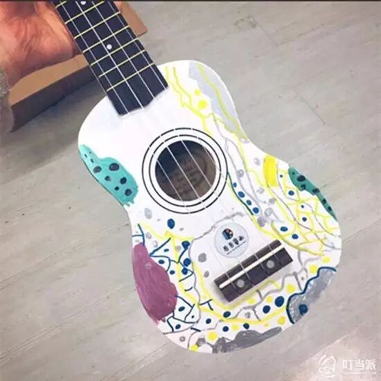 看到这个作品太兴奋了,因为老师我前几周也刚画了两把尤克里里,一一能把美妙的画附加在乐器上太棒了。有律动的线条也很符合尤克里里,不知你是否会弹奏它呢?弹奏一把自己画的乐器是独一无二的体验。