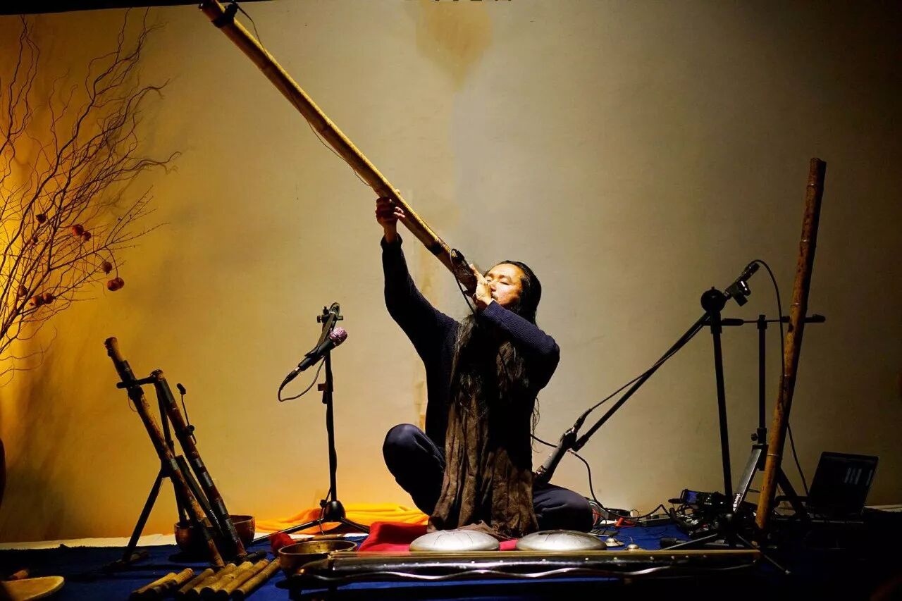 简易的舞台,几个长长的“律”,一把古琴,2个大铜碗,田不疚老师坐在其中,一声仰天长啸把在场的观众带进了远古的呼唤!古琴发出清越的声韵余音绕梁,久久回荡。