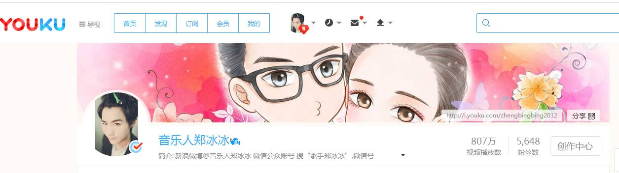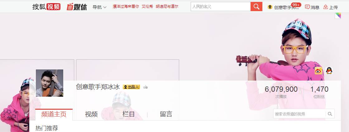 目前是优酷音乐牛人,上传视频已有8000多个,千万人气,今日头条3000多万点击