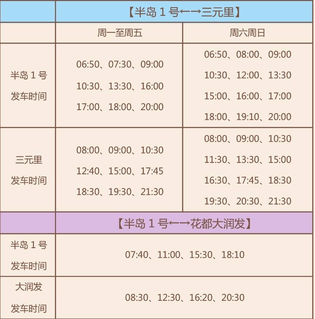 ① :前往三元里/花都大润发乘坐项目楼巴,具体时间刻表如下: