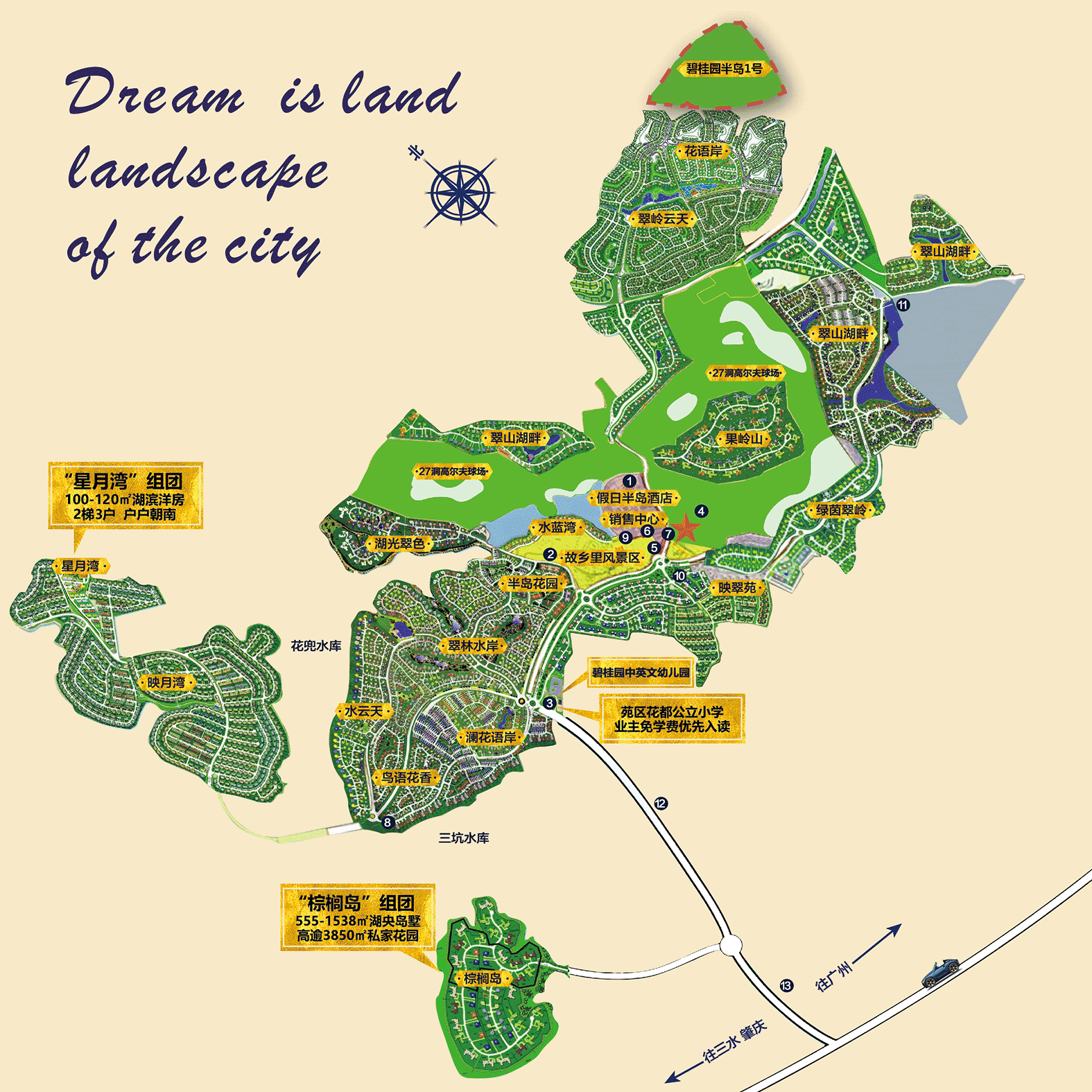 ①:机场高速-大广高速-肇花高速(肇庆方向)-马岭出口下-前行4公里右转-半岛1号
