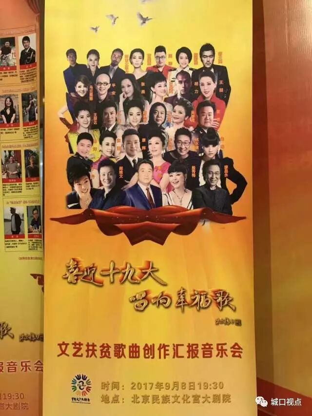 由中国文联、中国音协主办的“喜迎十九大,唱响幸福歌”文艺创作歌曲汇报音乐会9月8日晚7点30分在北京民族文化宫大剧院举行,由著名音乐人胡力作词作曲为城口创作的歌曲《小河弯弯唱山歌》在音乐会上由著名歌唱家李丹阳、男歌星胡大亮演唱,、县委宣传部部长袁开勇、、。