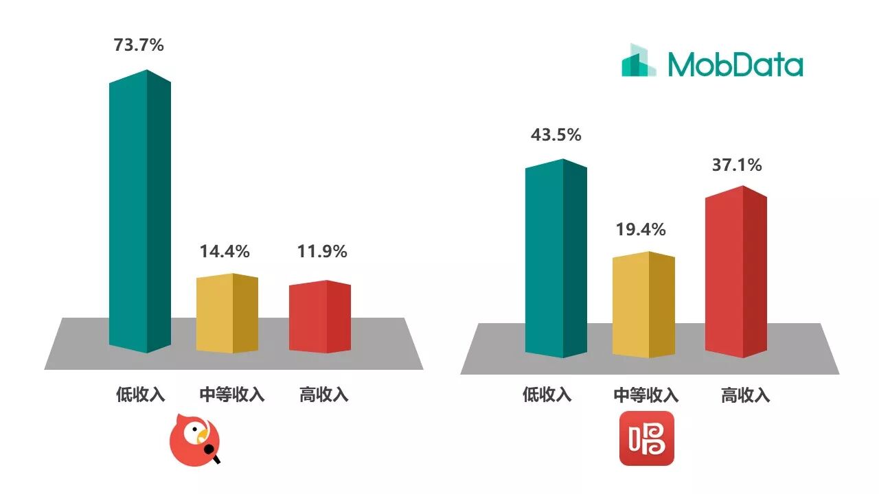 学历和收入低是因为学生占比高吧,全民k歌用户更年轻应该