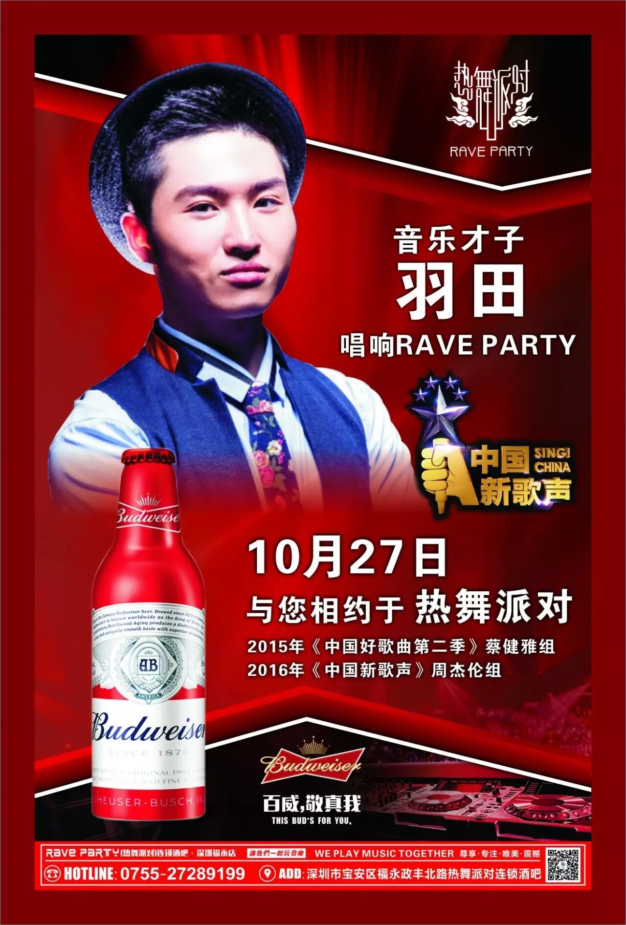 『嘉宾预告』♛10月27日中国新歌声周杰伦组5强《周羽田》歌友见面会!