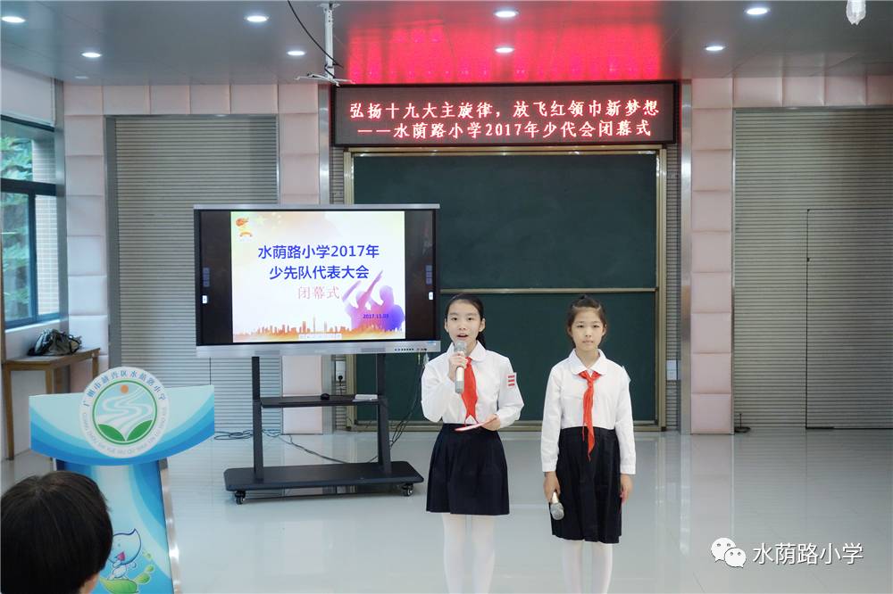 火红的队旗高高飘扬,鲜红的领巾系满理想,水荫路小学少代会自9月20日开幕以来,顺利完成各项议程,于11月3日下午隆重举行闭幕式