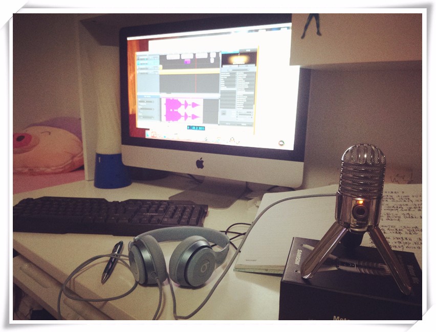歌曲制作的过程稍微艰难,虽然研究过编曲软件,但比较生疏,只会最简单的功能,搞了很长时间才搞定编曲,录音更是艰难,虽然设备还算先进,但软件使用不大熟练,崩溃了几次,重录让人很窝火。编曲搞了周六一晚上,录音搞了周日一晚上,不过总算是完成了,虽然还有很多不满意之处,就先拿出来小样亮一亮吧~